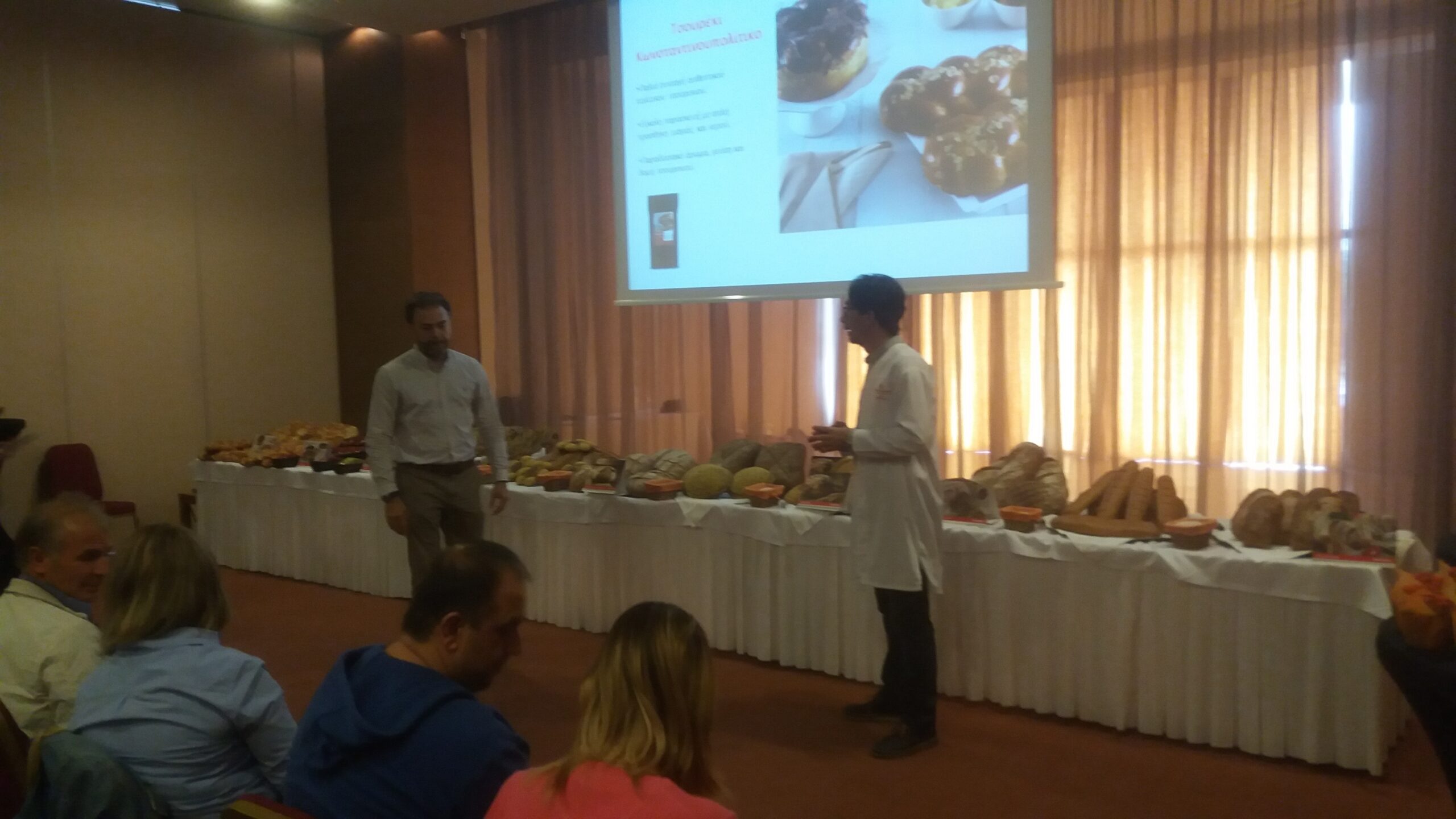 Πιο συγκεκριμένα και μετά την συνοπτική εταιρική παρουσίαση, έγινε παρουσίαση τόσο ψωμιών όσο και γλυκών με τα άλευρα και μίγματα αρτοποιίας και ζαχαροπλαστικής των Μύλων Θράκης.